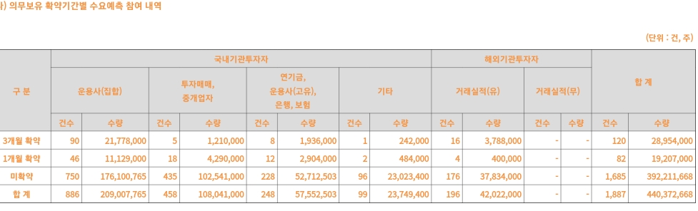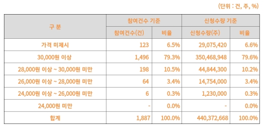 수요예측 신청가격 분포도 최상단에 분포하고 있습니다.