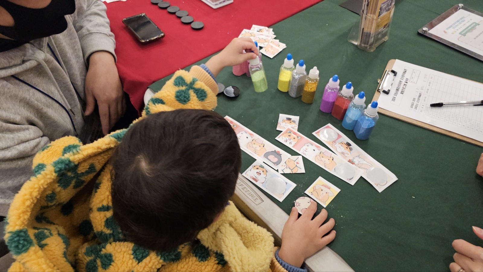 열심히 도움받아 이것저것 만드는 아들! 조금 이상한 그림의 그립톡을 만들었지만 좋은 경험이 되었어요!