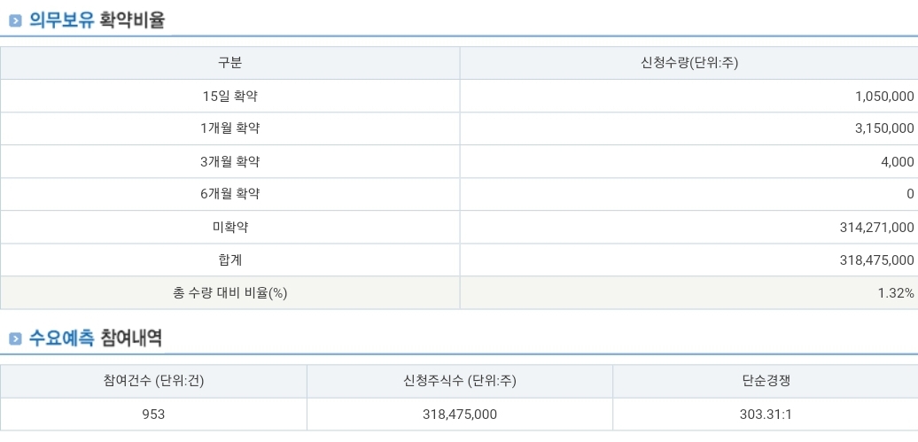 의무보유확약 1.32%