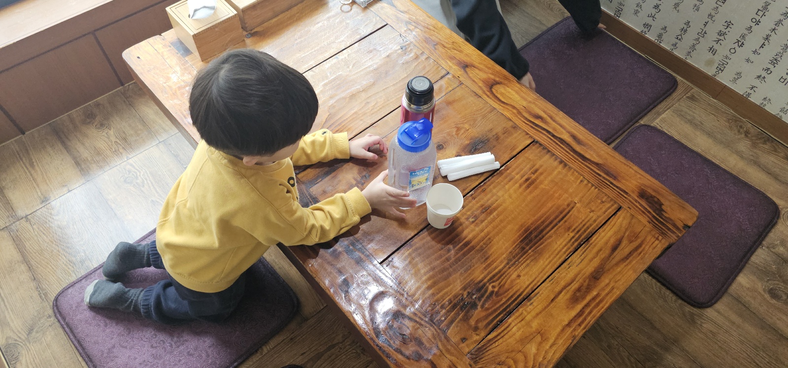 실내는 좌석과 테이블&의자, 룸 등 여러형태가 있어 취향에 맞게 자리를 잡을 수 있었습니다. 저희와 같이 아이가 있는 일행은 간이벽으로 둘러싸인 룸 형태를 선호하였답니다. 반면에 젊은 사람들끼리 모인 사람들은 신발을 벗을 필요 없는 의자와 테이블을 선호하셨고요. 어르신 분들이 많은 일행은 좌식에서 여러 테이블을 잡고 식사를 하였습니다.