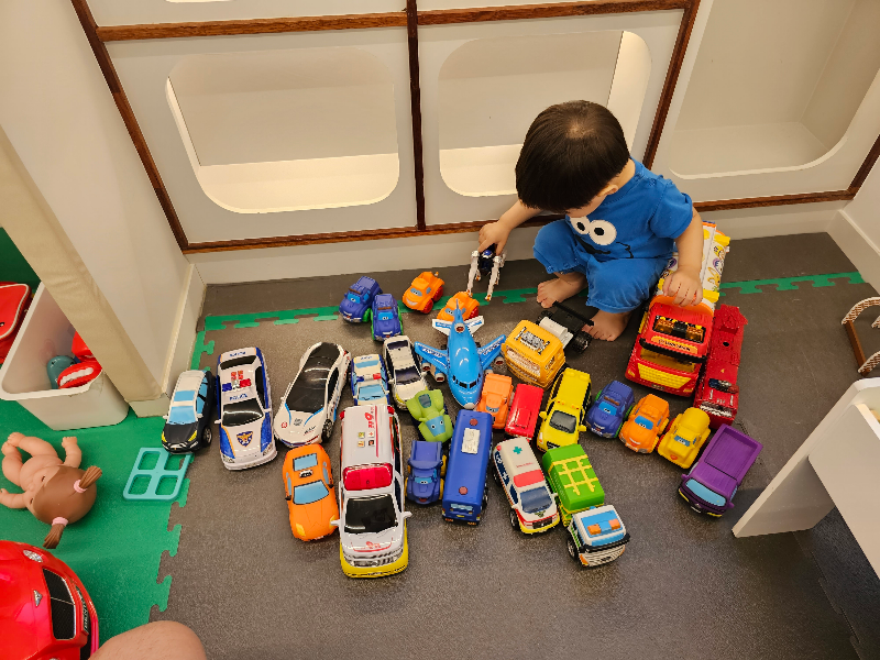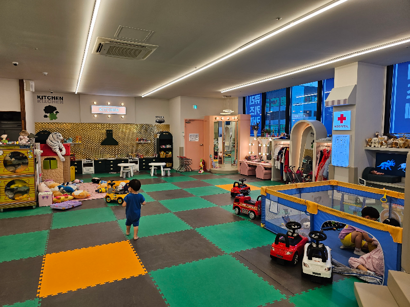 처음엔 아이가 익숙한 자동차 장난감만 가지고 놀길래 시간낭비였나 싶었습니다. 하지만 30~40분 탐색의 시간이 끝난 뒤엔 여기저기 탐구하며 신나게 놀기 시작해서 무료쿠폰 시간인 1시간이 경과했을땐 도저히 집에 가자고 할 수가 없었습니다. 고로 1시간을 더 놀고 토탈 2시간이 되어서야 아이에게 놀이기구 빠이빠이를 시키고 나올 수 있었습니다. 추가요금을 냈지만 애초에 감안하고 방문하기도 하였고 주중 방문에 돈이 아깝지 않았습니다.