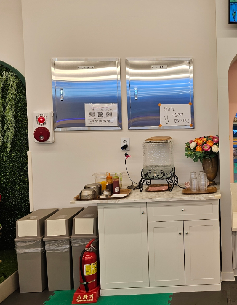 물과 소스, 식기류를 챙길 수 있는 공간도 있어요 :)