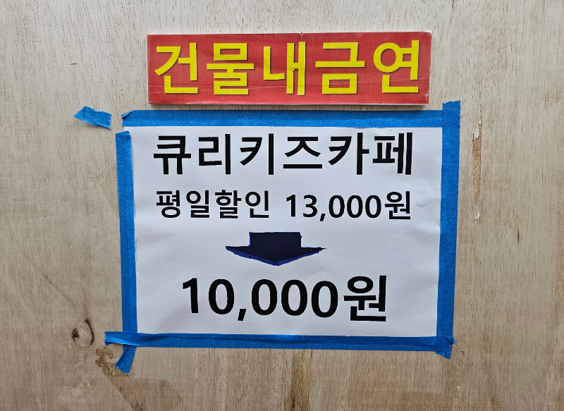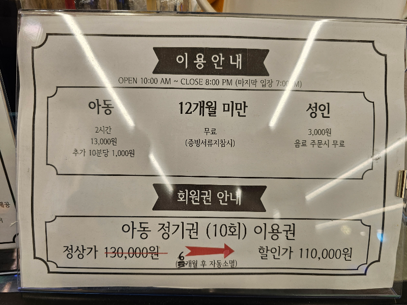 엘리베이터에 키즈카페 할인 내용이 붙어있어서 한 징 찍어보았습니다.