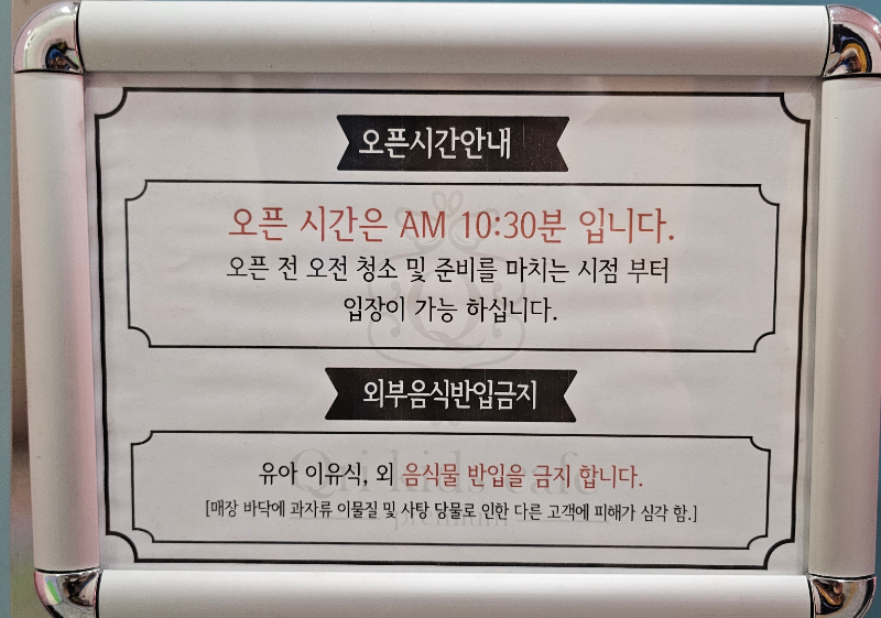 - 오픈시간 안내 : 오전 10시 30분