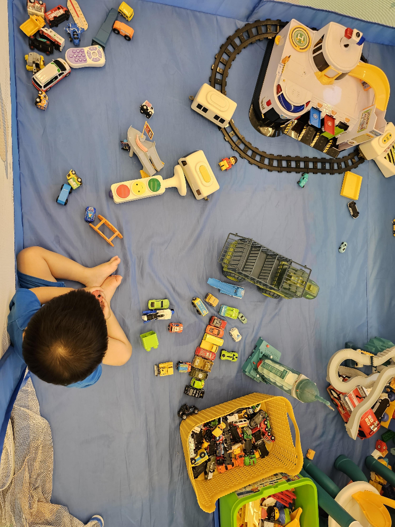 장난감을 다 꺼내서 나열해놓고 집어넣기 싫다고 떼써서 결국 나중에 사장님이 치워주셨습니다..