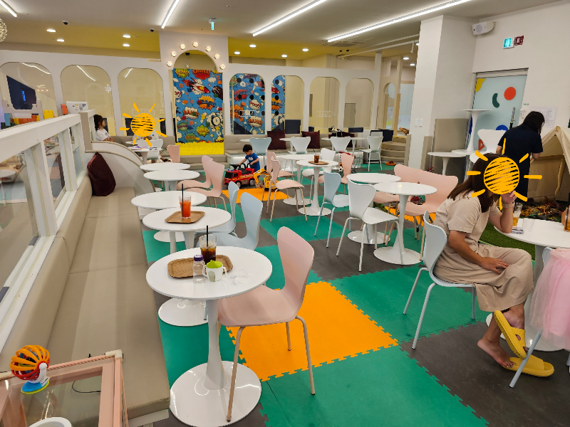 건물 한 층 전체가 키즈카페여서 생각보다 크기가 컸으며, 여러 놀이장난감들을 밀도있게 배치하였습니다.