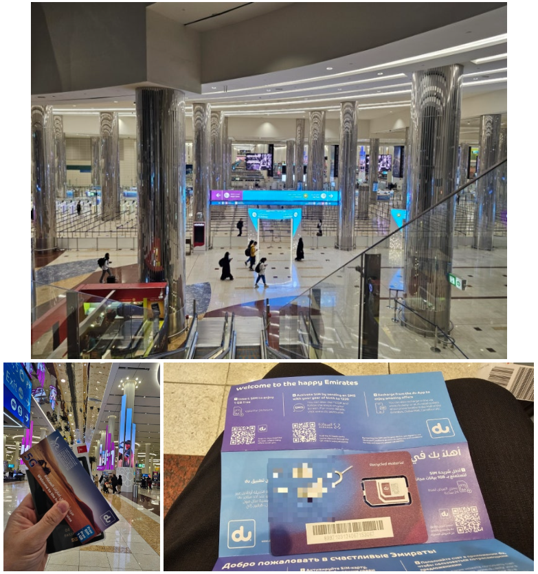 두바이에 도착한 시간은 새벽. 환승객이 많아 입국심사는 빠르게 통과할 수 있었어요. 입국 시 여권에 끼워주는 1GB 무료 유심도 챙기세요. 짧은 여행엔 충분히 유용하게 사용 가능합니다.