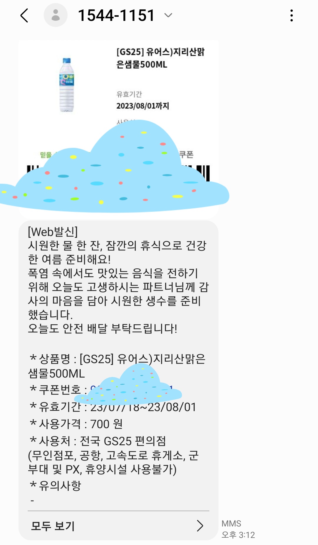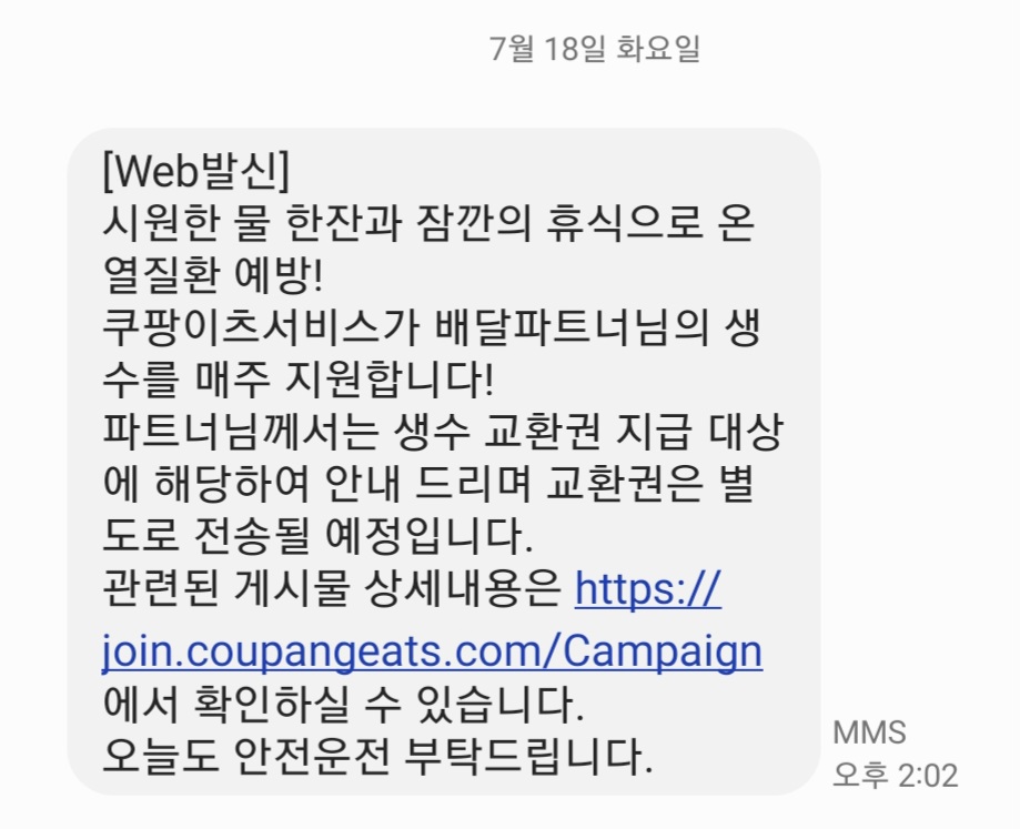 1) 쿠팡이츠에서 매주 생수지원을 해줍니다.