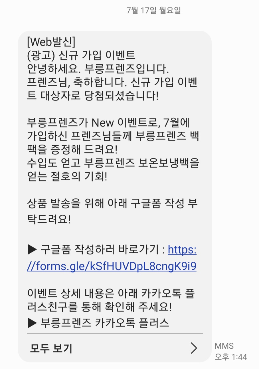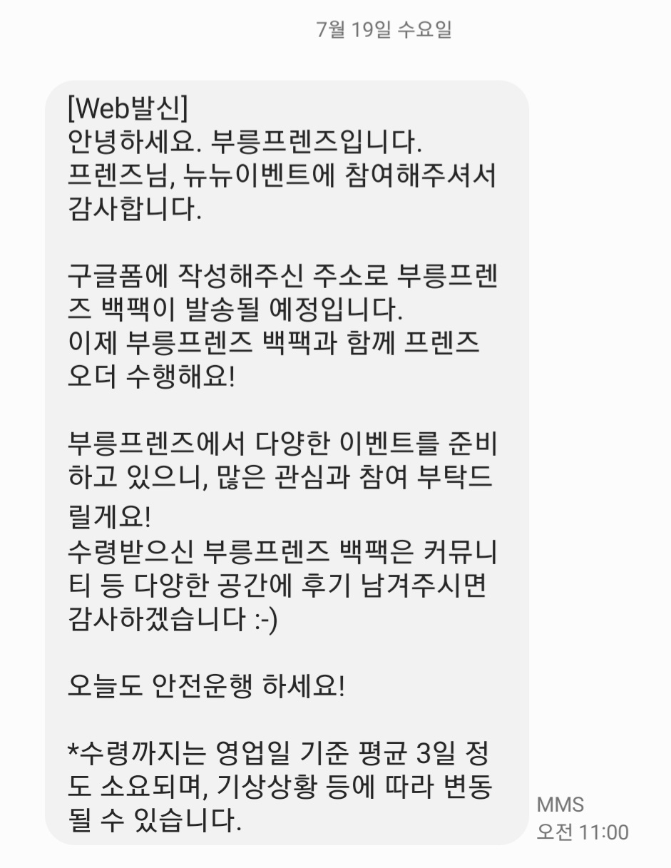 2) 부릉프렌즈 백팩 이벤트 당첨
