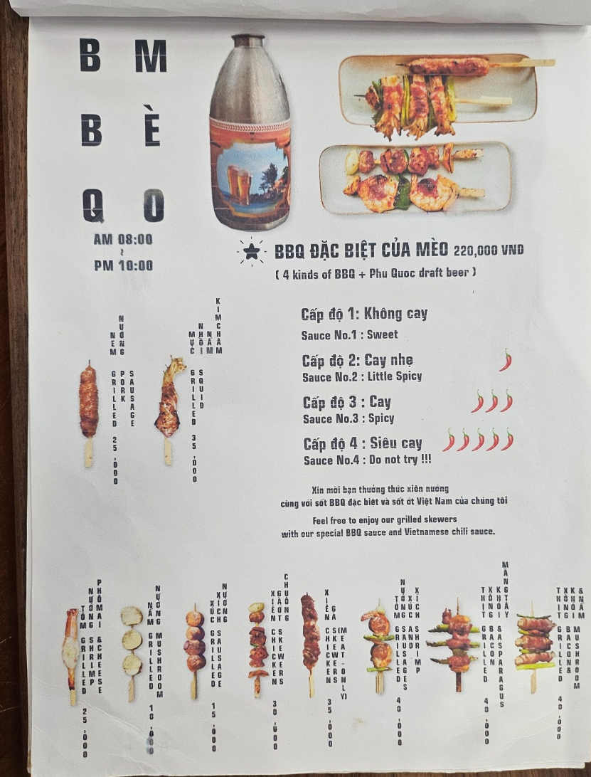 | BBQ đặc biệt của Mèo | 바비큐 닥 비엣 꾸어 메오 | 메오 키친 스페셜 BBQ 세트 |