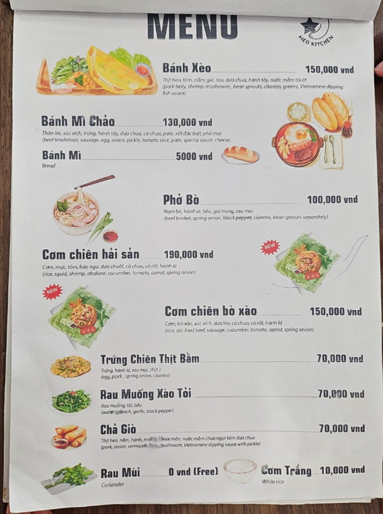 MEO Kitchen은 한국인 관광객들에게 특화된 베트남 로컬 레스토랑이라는 느낌이 강했습니다. 현지 전통 스타일의 요리를 유지하면서도 입맛은 한국인 기준에 맞춰 정제되어 있었고, 직원들도 상당히 친절하고 의사소통에 큰 어려움이 없었습니다. 다만, 진짜 ‘현지인 전용’ 로컬 맛집을 찾는 분들에겐 살짝 상업적인 느낌이 있을 수도 있습니다. 그렇지만 휴양지 여행객 입장에서는 청결한 환경, 한국어 지원, 맛있는 음식, 합리적인 가격이라는 조합은 꽤나 만족스러웠습니다.