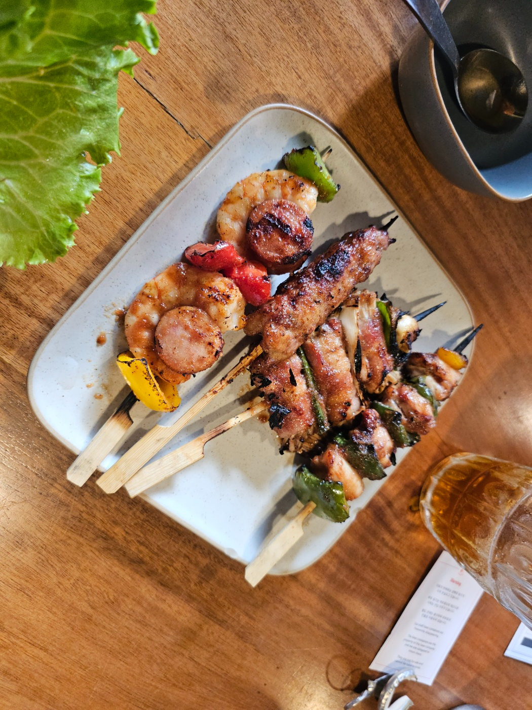 닭고기, 소시지, 새우 등이 고루 포함된 꼬치였는데, 식감이 부드럽고 촉촉해서 여느 스테이크 못지않게 훌륭한 퀄리티였습니다. 그릴의 불향이 느껴져서 숯불에 구운 듯한 감칠맛도 있었고, 맥주와 함께 먹기 딱 좋은 메뉴였습니다.