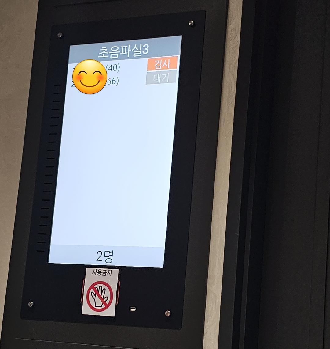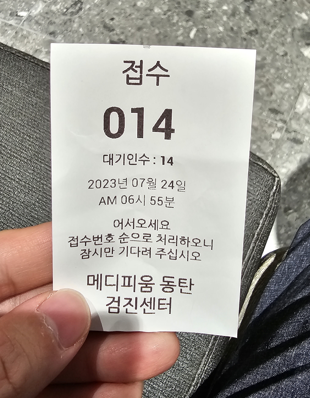 어플로 미리 문진표를 작성하였기에, 대기 순번 표만 뽑아주십니다.