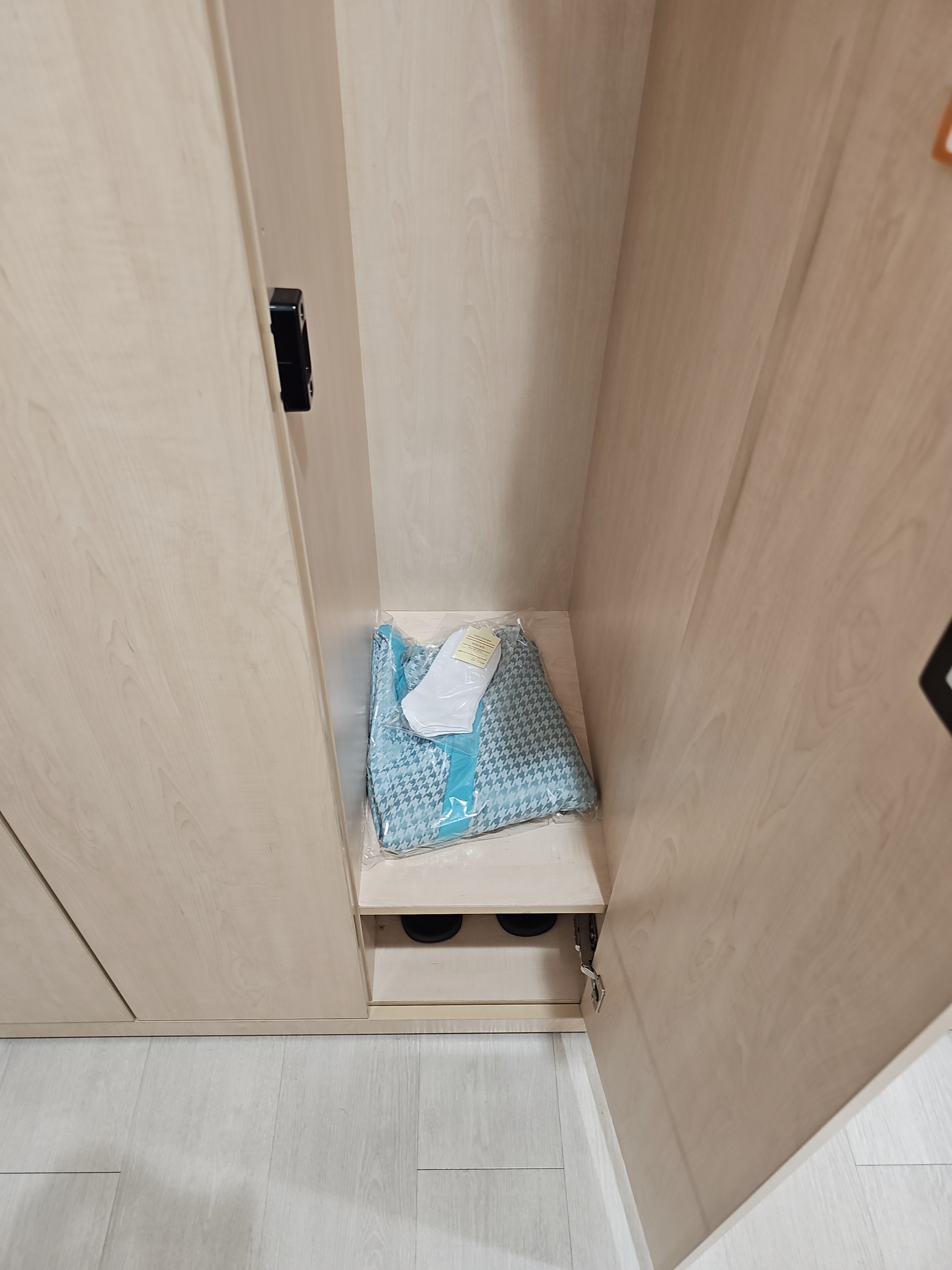 짠. 옷 입는 방법은 사물함 문 뒤편에 안내되어있습니다.