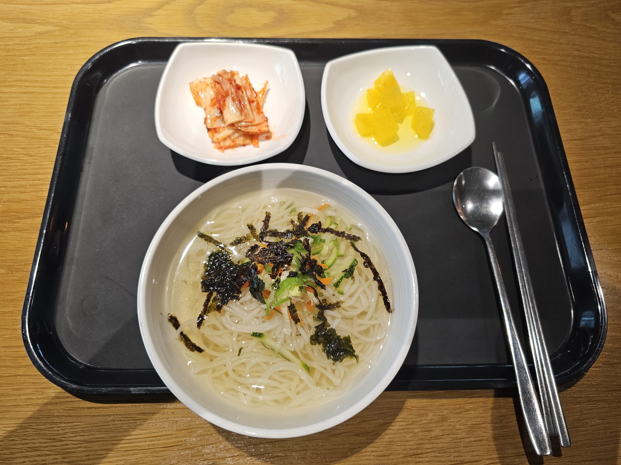 식권을 가지고 가면 죽 / 국수 중 원하는 메뉴를 주문받습니다. 저는 국수를 달라고 하였습니다.