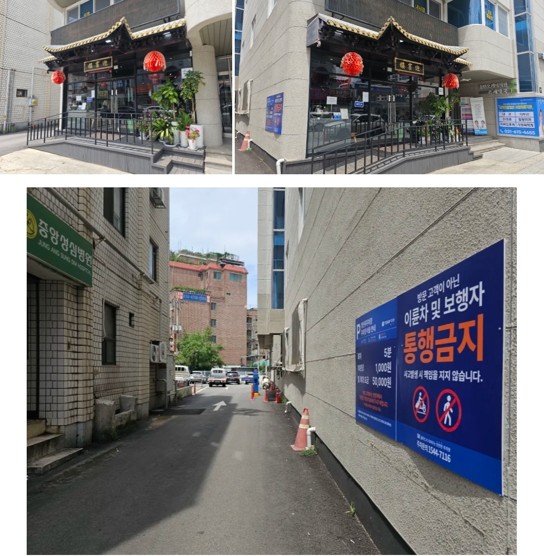저희는 도보로 이용했기에 주차장은 이용하진 않았습니다. 다만 건물 옆에 주차장 입구가 있더군요. 그리고 후술하겠지만 영빈루에서 식사하면 1시간 주차 무료 처리를 해주십니다.