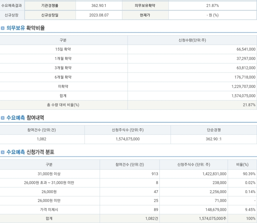 여러모로 생각이 많아지는 기관 경쟁률과 의무보유확약 결과였습니다.
