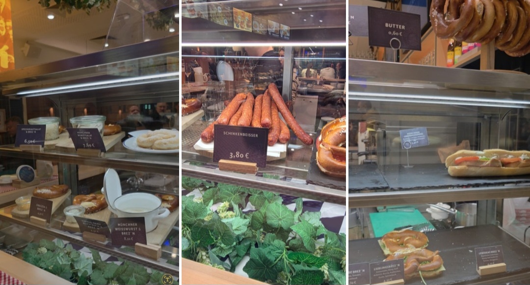 쇼케이스에 독일식 프레첼(Brezel), 소시지, 샌드위치 등 간단한 스낵류가 진열되어 있었지만, 저희는 배가 불러 패스했습니다. 이곳의 가장 큰 장점은 안주를 시키지 않고 맥주만 주문해도 전혀 눈치가 보이지 않는다는 점입니다. 오로지 맥주 맛에만 집중할 수 있어 좋았습니다.