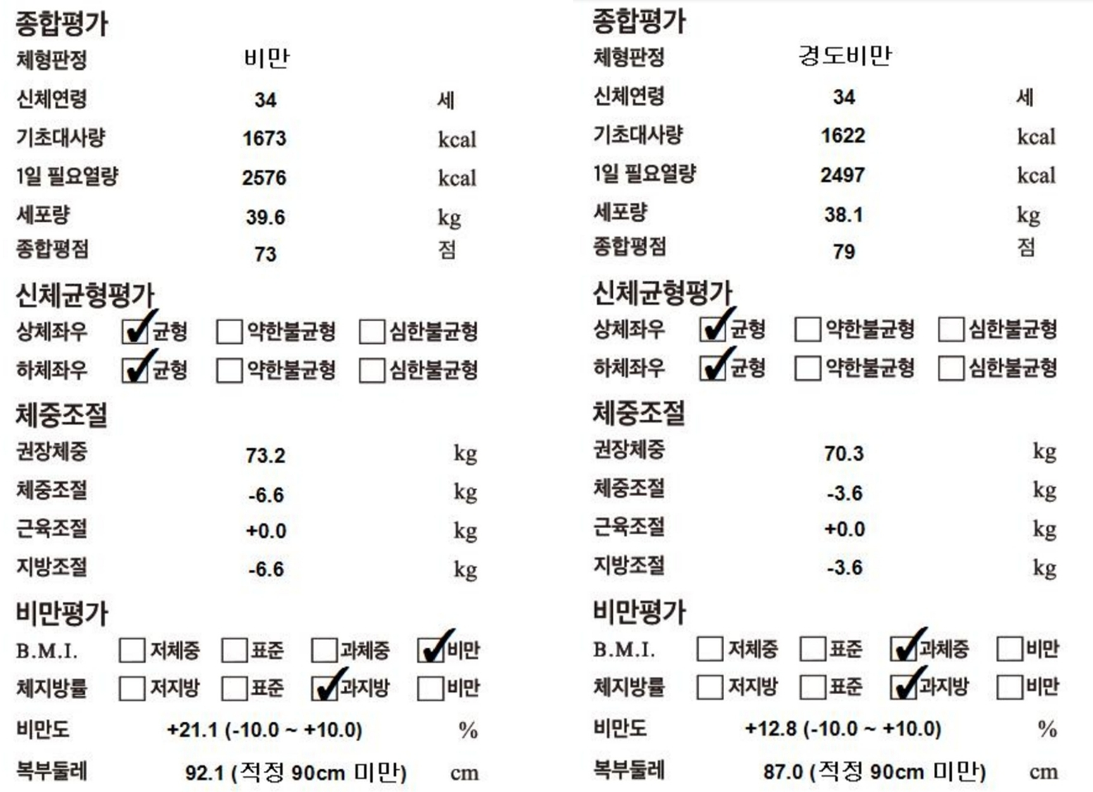 체질량 진단 : 비만 → 정상
