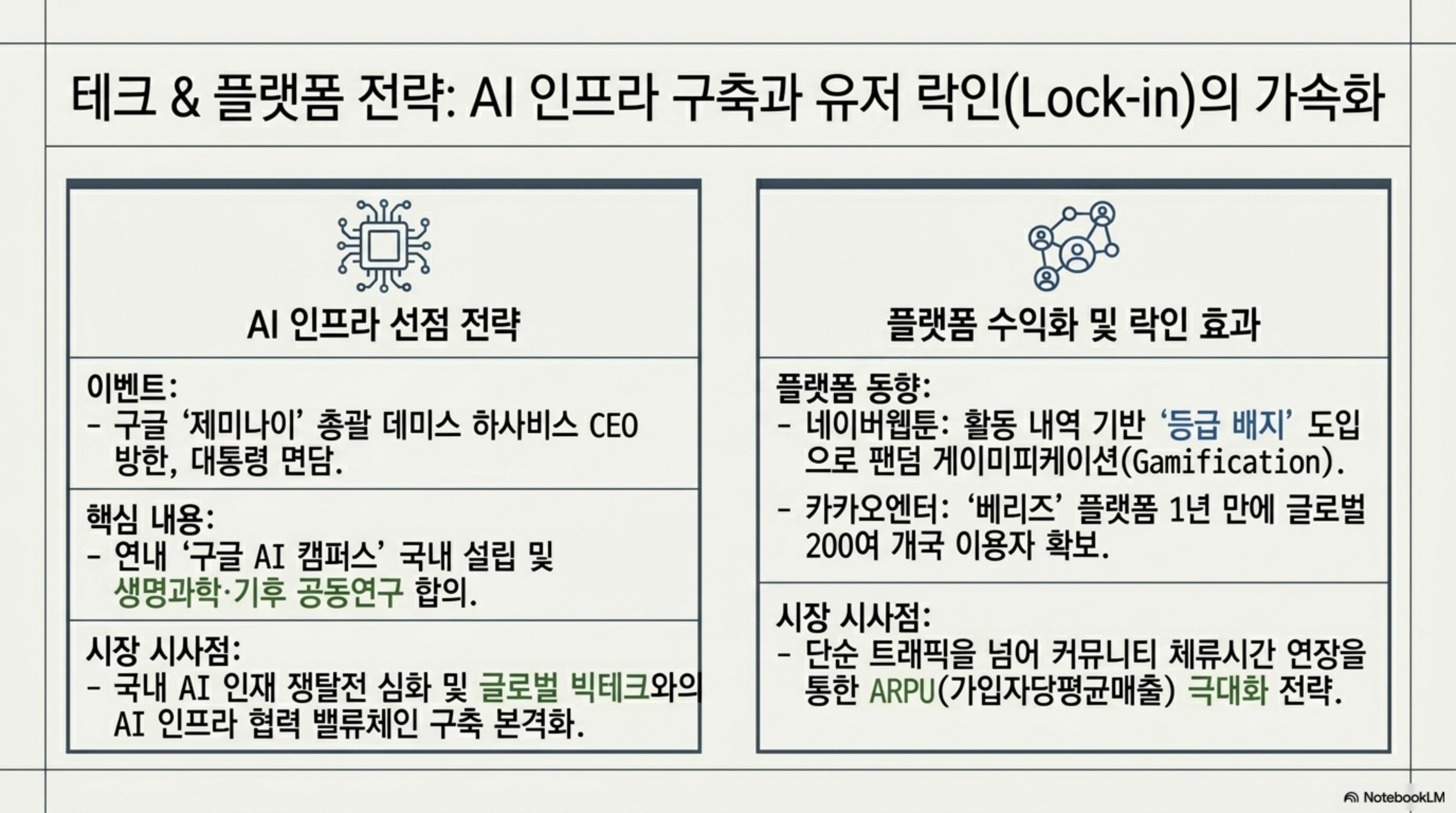 3. 이재명 대통령이 27일 청와대에서 구글 ‘제미나이’의 개발 및 관리 책임자인 데미스 하사비스 구글 딥마인드 CEO와 만나 국내 AI 발전 방안을 논의했습니다. 이 대통령은 하사비스 CEO와 생명과학·기후 등 난제 해결을 위한 공동연구, AI 인재 육성을 위한 ‘구글 AI 캠퍼스’ 연내 국내 설립 등에 합의했습니다.