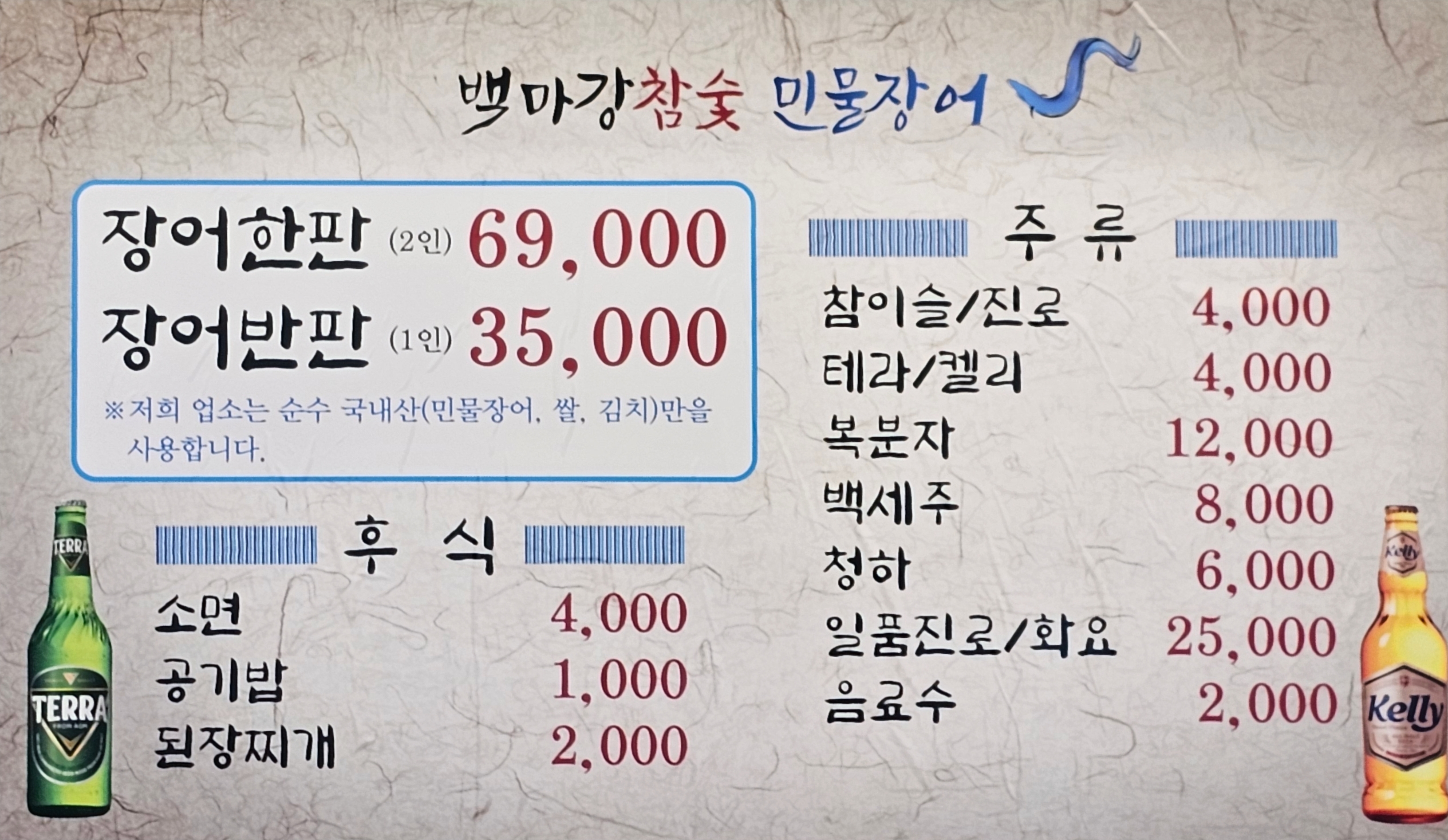 아이는 장어구이를 주로 먹었고, 장어탕은 맑은 국물이 아니라 붉은 국물이여서(?) 어른들만 먹었어요.