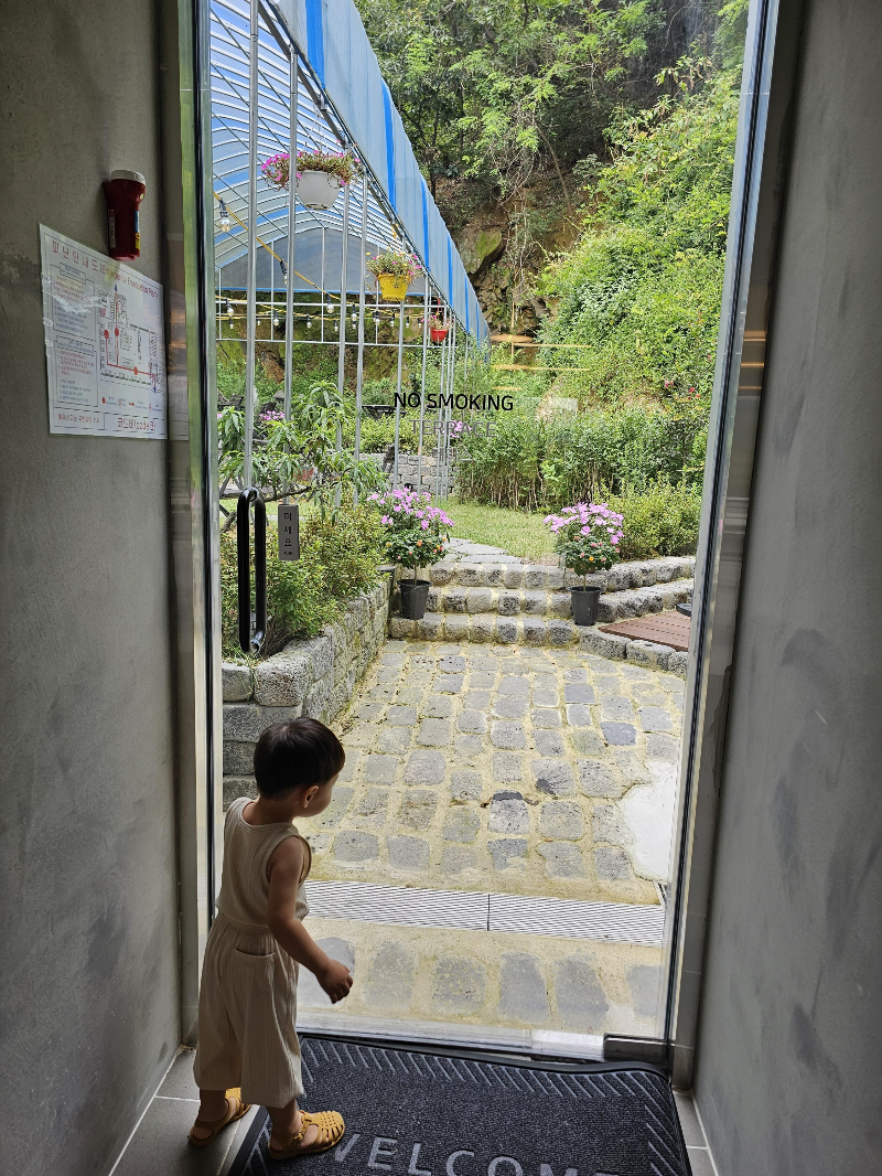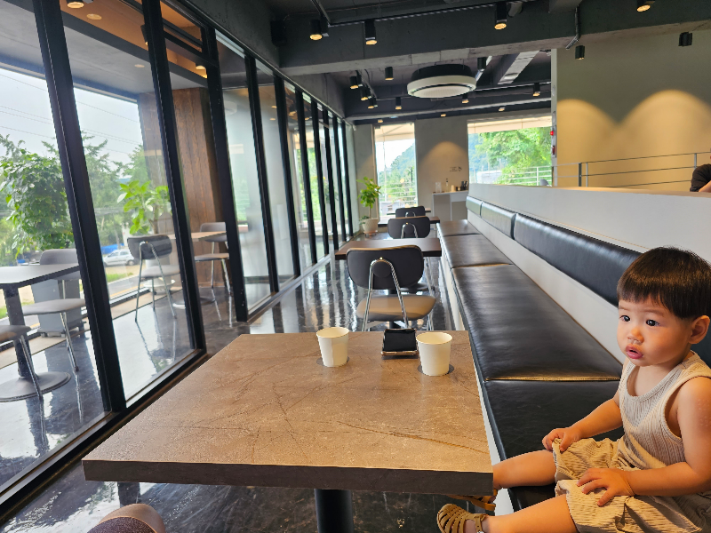 아이가 카페에 적응되었는지 돌아다니며 뛰어다니려고 해서 식사를 마무리하고 카페를 나왔습니다.