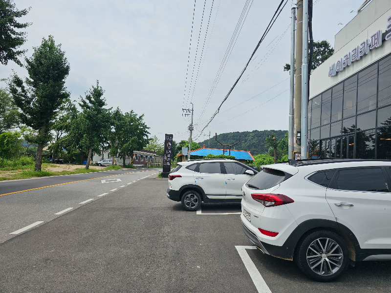 자차로만 방문가능할 정도의 위치에 있다보니 주차장 면을 많이 확보해 놓은 느낌입니다. 저흰 일요일 11시 30분 쯤 방문하였는데 주차장 자체는 널널했습니다. 코드비 인스타를 보니 2023.06.15 개점했네요. 아직 새 카페라서 입소문이 덜 탔나봐요. 저희 부부가 원래 신규 개업 카페 이런덴 본능적으로 얼리어답터랍니다. 호호호