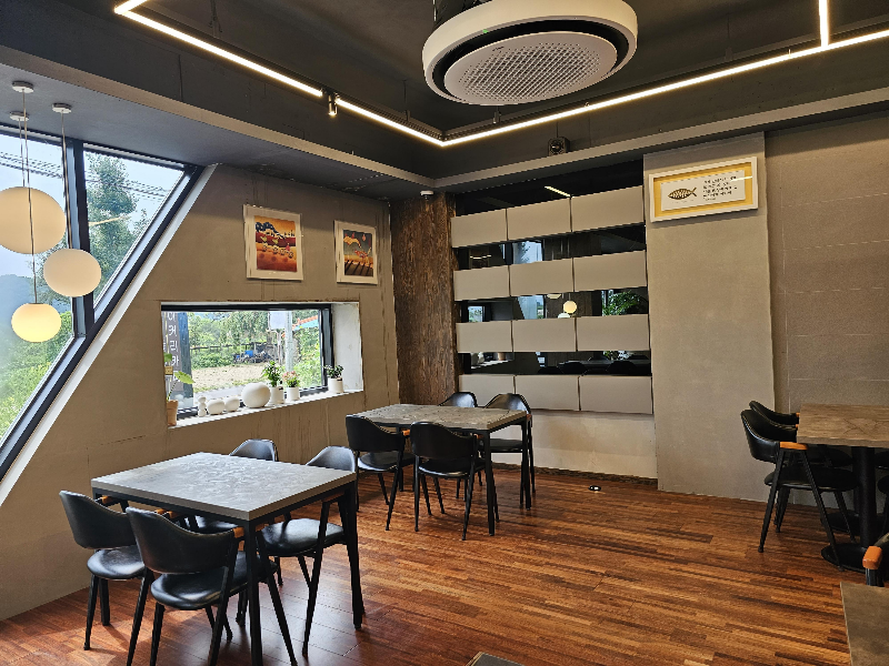 1층도 적당히 자리가 있으며 경치가 좋습니다.
