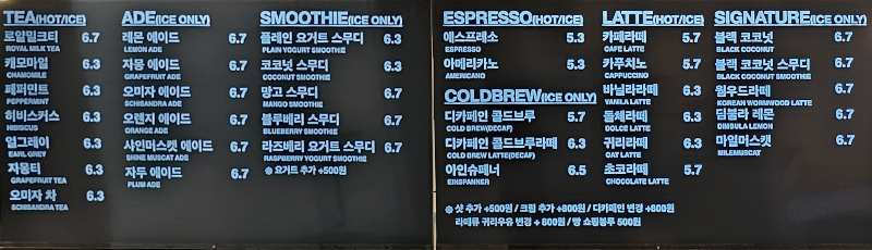 생각해보니 시그니처를 안 먹어봤네요. 아이와 함께 먹을 수 있는 음료 위주로 주문하다보니 그 점은 아쉽게 되었습니다.
