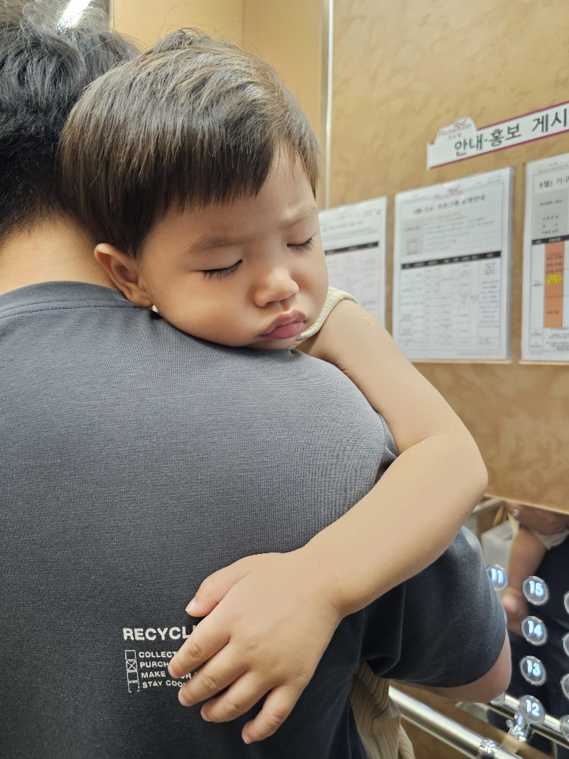 아이는 카페에서 잘 먹고 잘 자고 돌아오는길에 잠들어버렸답니다, :)