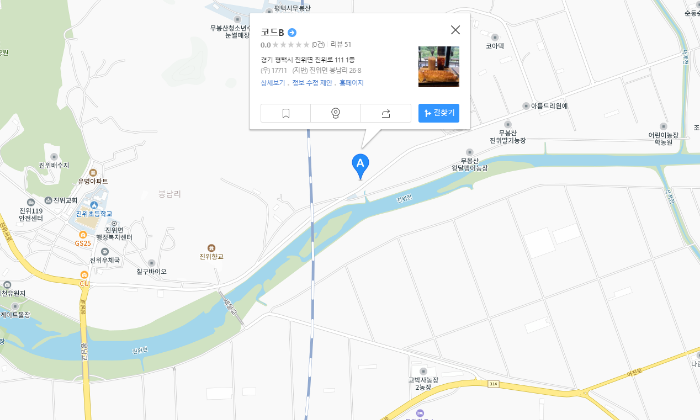 보시다시피 뒤로는 산이 있고 앞으로는 논밭이 있는 작은 도로 곁에 위치하고 있습니다. 차량으로만 방문이 가능하겠습니다.