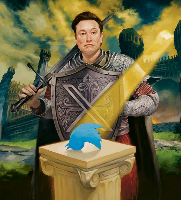 THE REAL STORY OF MUSK’S TWITTER TAKEOVER라는 기사에 삽화가 인상적이네요.