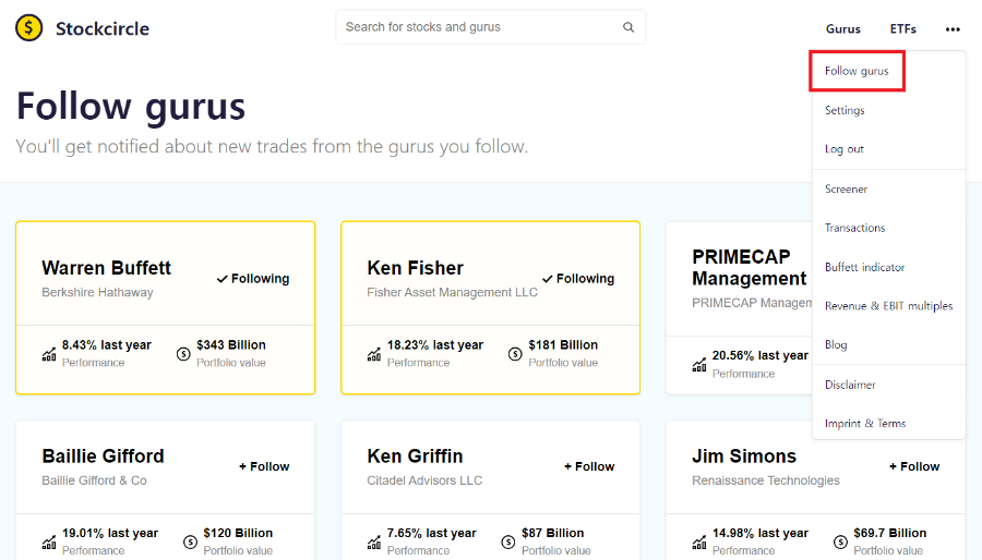 Stockcircle - Analyse Portfolios of Investment Gurus