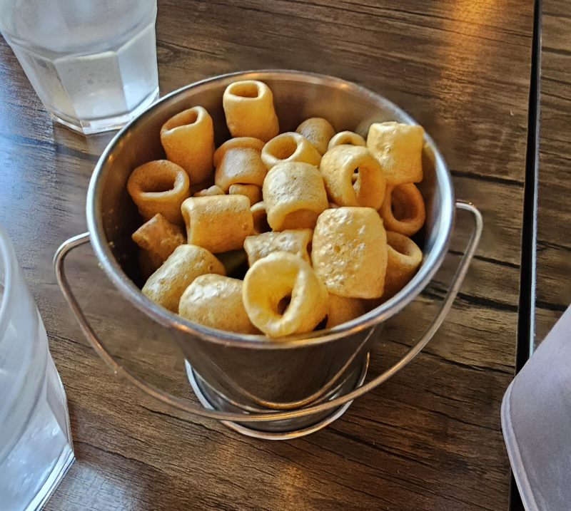 자리에 앉으니 기본 안주로 제공되는 과자입니다. 여타 술집과 다를 바 없습니다. 하지만 맥주는 요리보다 빨리 나오는 법. 술잔을 짠- 부딪히고 담소를 나눕니다. 안주는 천천히 나와도 됩니다. 오래간만에 나눌 얘기는 많으니까요. 그와 별개로 사장님의 능수능란한 솜씨로 음식은 빠르게 나왔습니다.